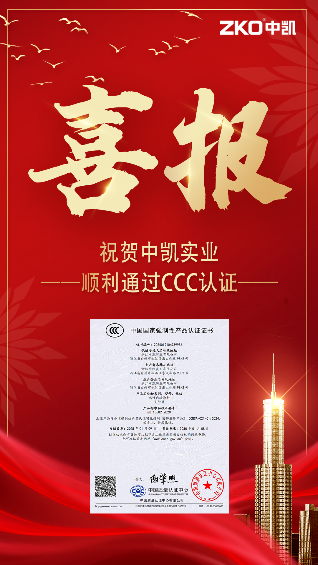 公司成立于1995年,占地面積10000㎡,建筑面積9000㎡,擁有工程師,技術員等職工120人。公司擁有精良的生產設備,完整的管理體系和先進的檢測設備,經過多年的市場調研和產品開發,薈萃了許多科研精英,解決了以往涂料中存在的一些長期沒有獲得解決的缺陷,成為建筑涂料領域的佼佼者,并成為國內具有一定規模和信譽的涂料生產企業。主要產品“中凱”牌高、中檔內外墻厚質十大系列近百個品種的建筑涂料,建筑水性反射隔熱保溫涂料和建筑外墻外保溫隔熱防火材料三個體系。